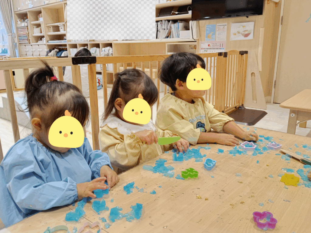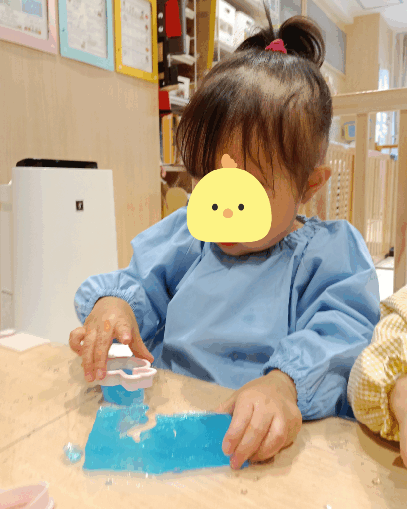おままごとの包丁で切ってみたり、慎重に型を抜いて、きれいなハートや動物の形を作った子と、