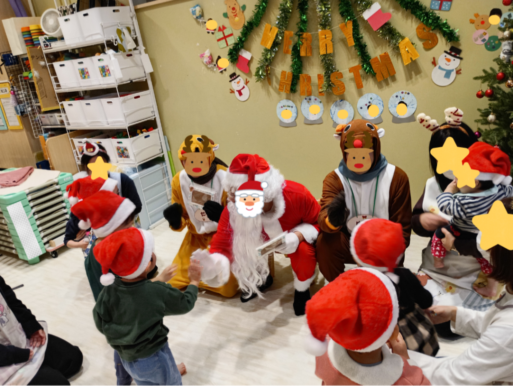 なんと、サンタさんとトナカイさんが遊びに来てくれました。