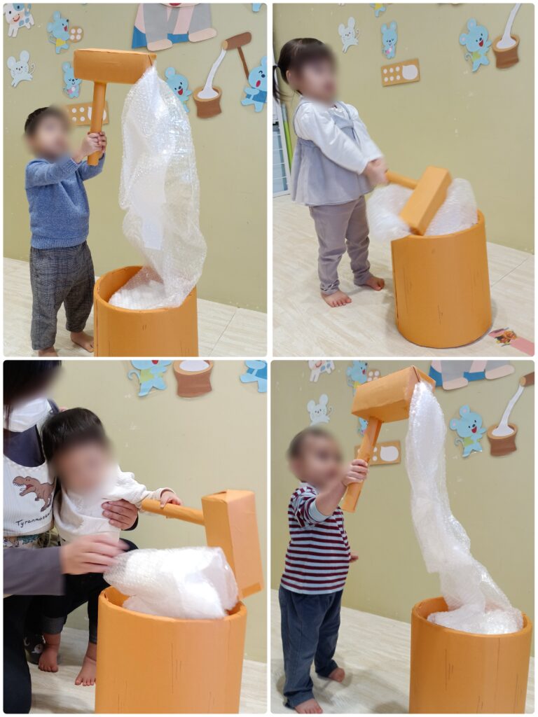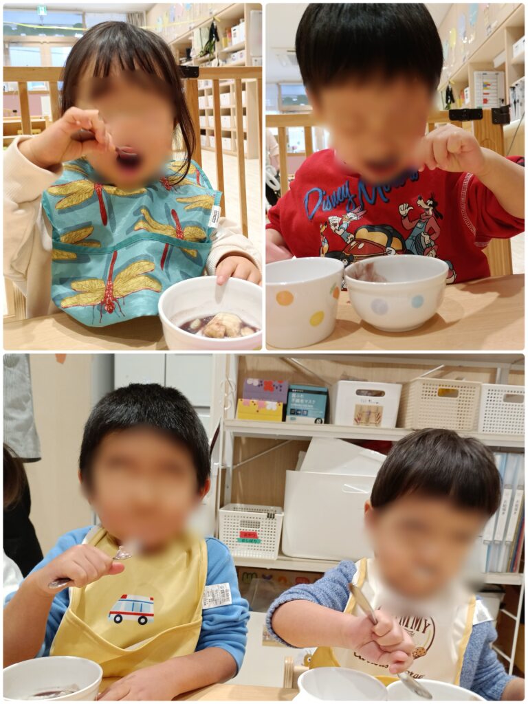 朝の会では、一人ひとりお名前を呼ばれるたびに、「あけましておめでとうございます!今年もよろしくおねがいします!」と言い合う子どもたちにみんなで大笑い🤭