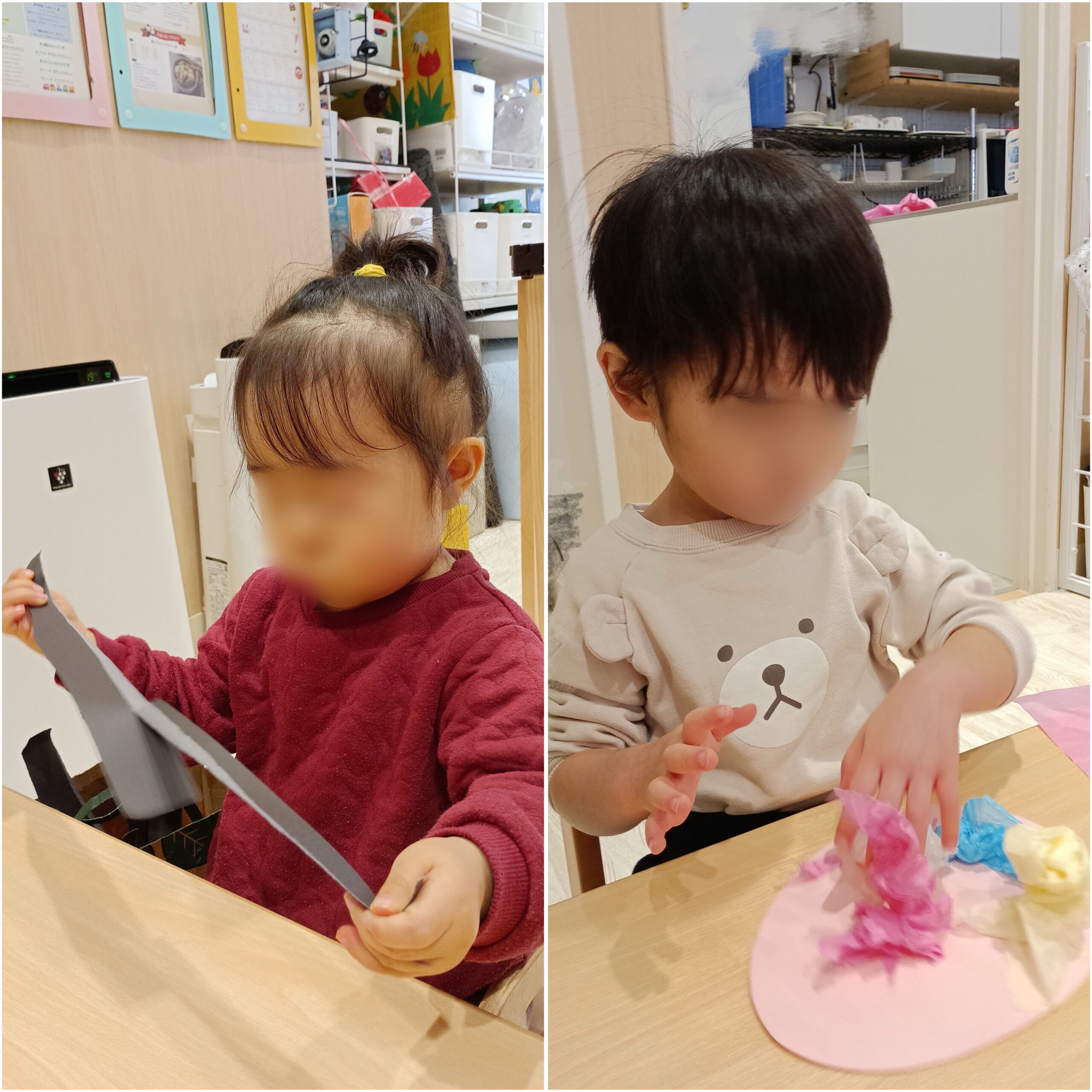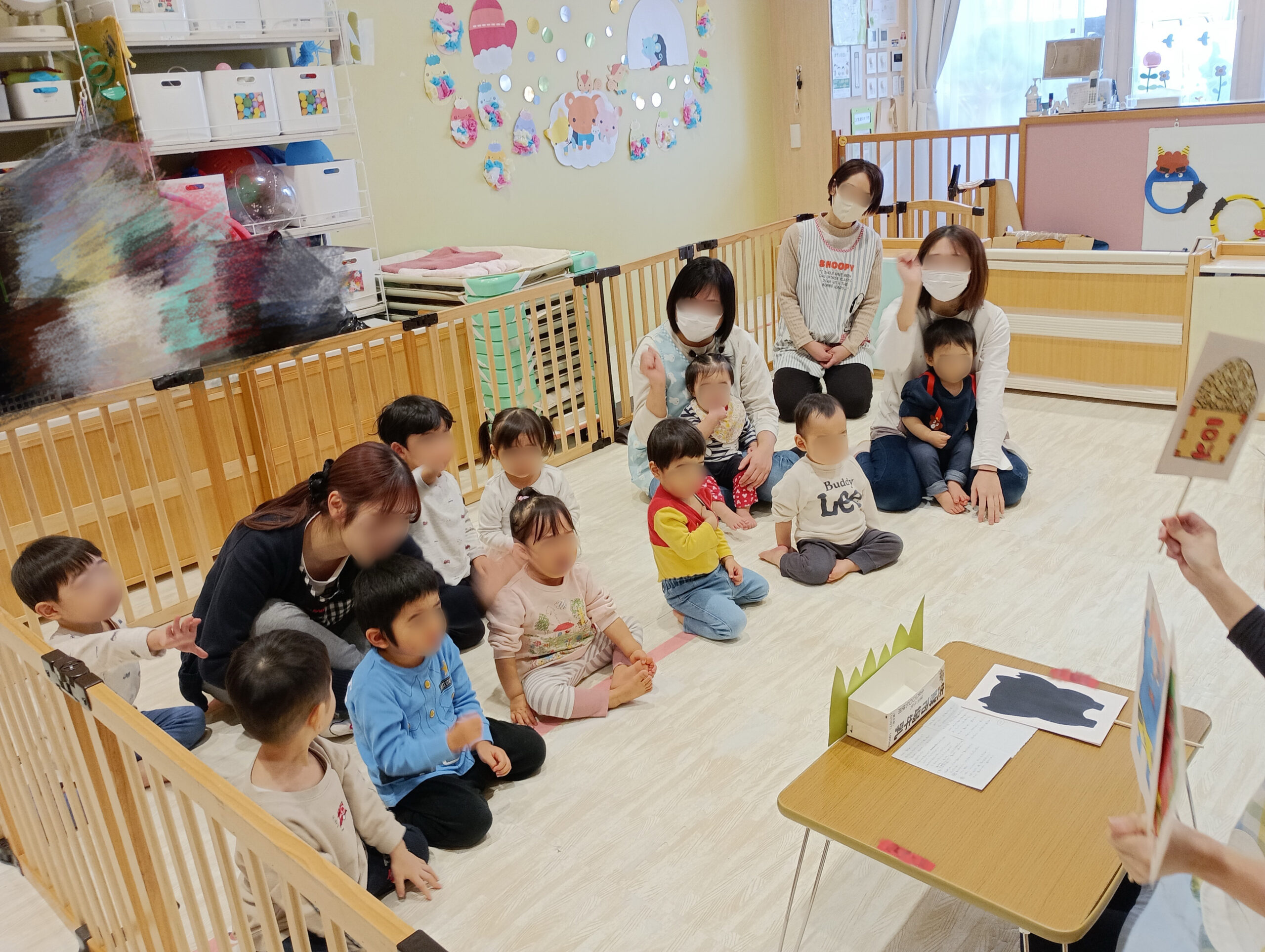 豆まきについてのペープサートの鬼を見て、不安げな表情になってしまう子もいましたが、先生やお友だちの「大丈夫だよ!」の声に、少しずつ自信を取り戻していきました😊
