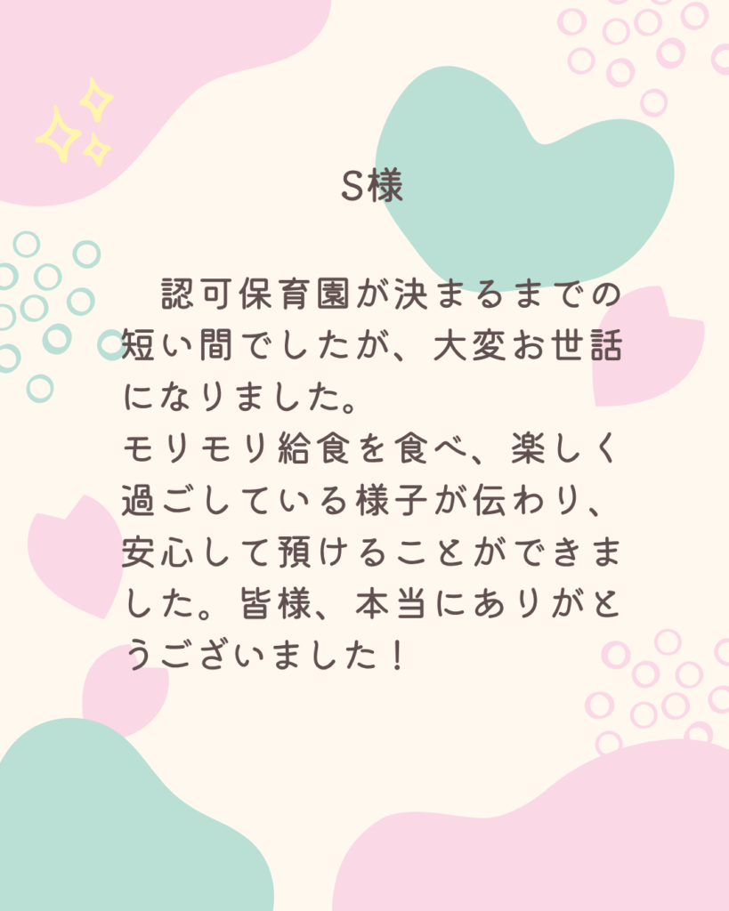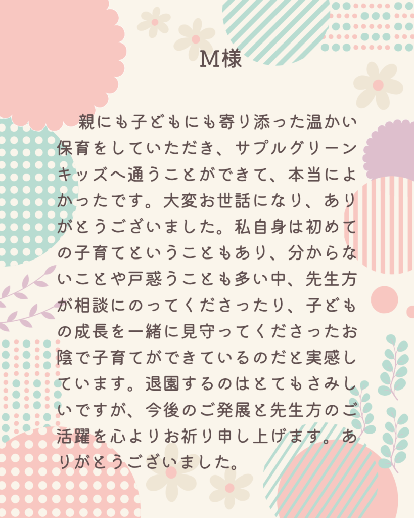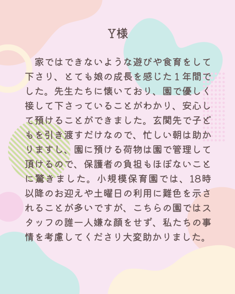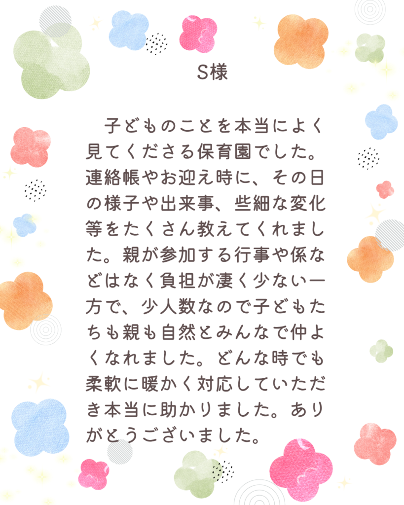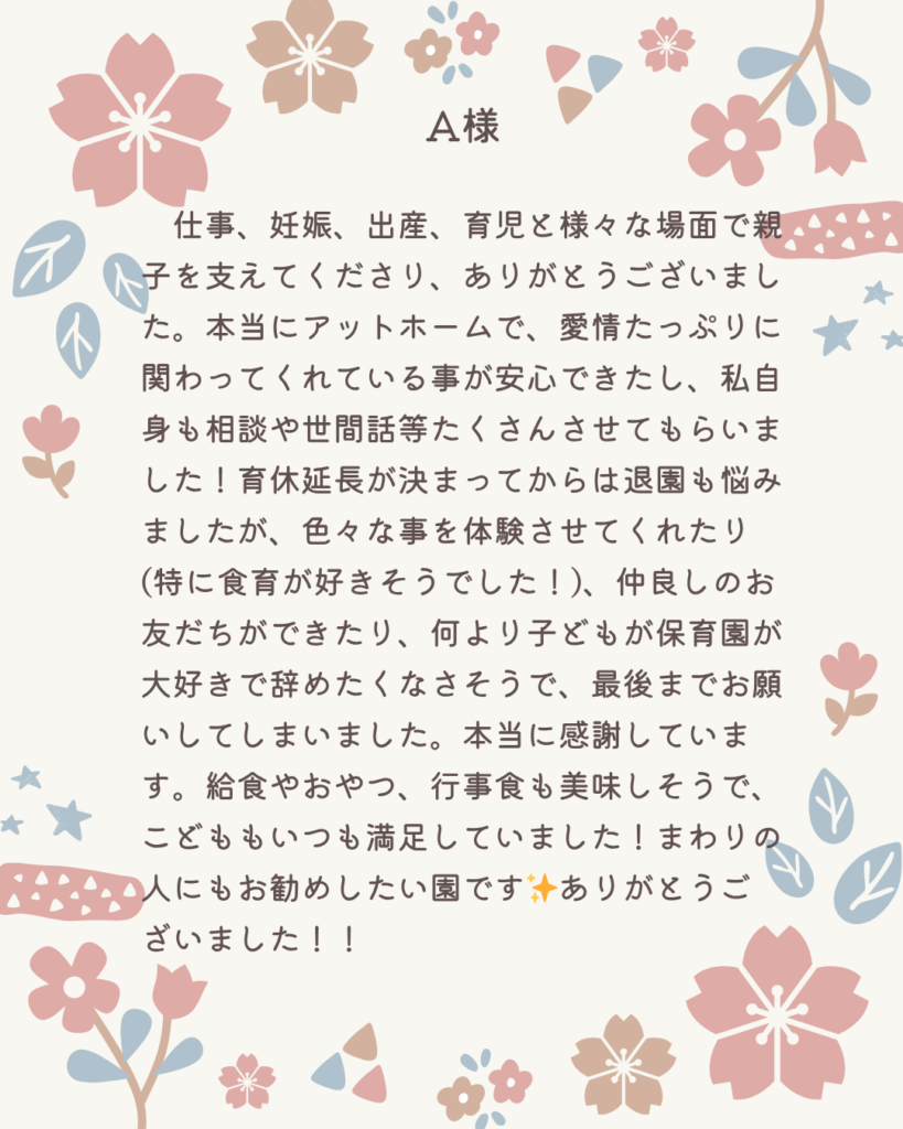 2025年に卒園・転園したご家庭にアンケートにお答えいただきました。